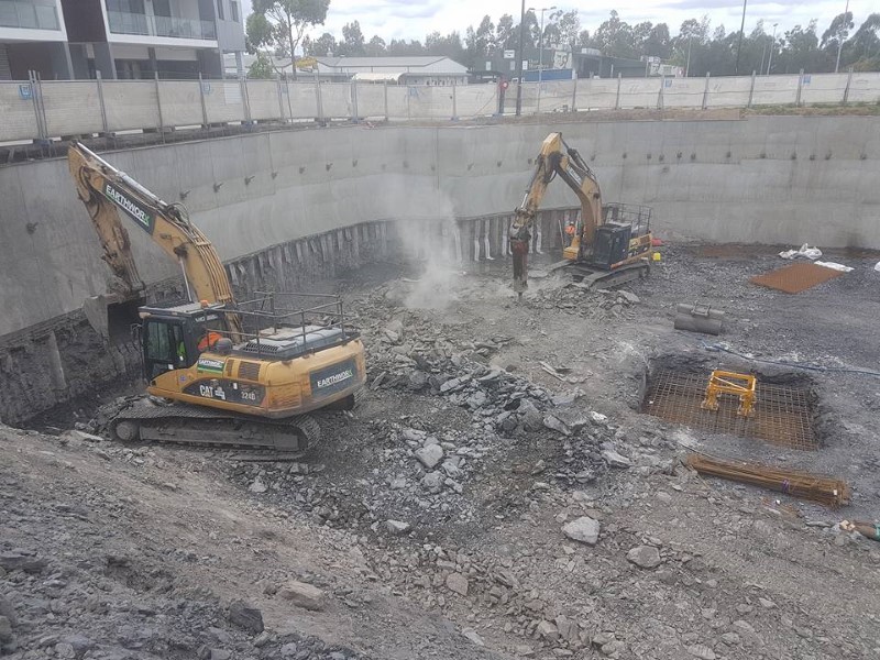 - Soldier piled walls with temporary ground anchors for retaining neighbouring properties.
